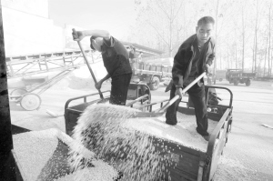 秋收秋种过后,商水县农民纷纷出售玉米,各粮食收购点呈现出一派繁忙的景象。图为化河乡农民正在一粮食收购点整理准备出售的玉米。魏红 摄