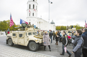 驻立陶宛美军向立民众展示武器装备 10月24日,在立陶宛维尔纽斯,驻扎在立陶宛的美军173空降旅部队向立陶宛民众展示武器装备。2014年春开始,美军开始向立陶宛轮派部队,与立陶宛部队和其他北约盟国部队共同进行训练。目前美军173空降旅部队已结束美军在立陶宛的第7次轮驻。新华社发