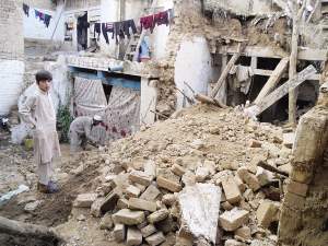 强烈地震造成巴基斯坦220人死亡 10月26日,在巴基斯坦北部科哈特,一名男孩站在地震中被毁的房屋中。据巴基斯坦媒体26日报道,当天发生的强烈地震已导致该国至少220人死亡、1200人受伤。巴基斯坦新闻部长拉希德说,灾区的救援工作已经展开,政府将全力帮助受灾民众。拉希德没有给出具体伤亡数字,但表示靠近震中的西北部开伯尔-普什图省和部落地区受灾最为严重。由于交通和通信不便,一些偏远地区的受灾情况目前还不清楚,死亡人数或将进一步上升。新华社发