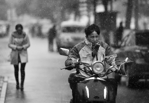 宁夏银川迎来降雪 10月30日,宁夏银川市街头,市民在雪中骑行。当日, 宁夏银川迎来降雪天气,气温下降6摄氏度左右。宁夏气象台发布道路结冰黄色预警,并提醒农业相关部门做好温棚防冻、加温等工作。新华社发