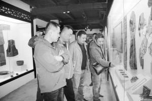 11月6日,外地游客正在项城市袁府豫东民俗展馆里兴致勃勃地参观。为挖掘、保护和开发利用当地民俗和非物质文化遗产,反映和展示豫东独特的民俗民风和生产生活习俗,项城市豫东民俗展馆收集了200多件珍贵实物,有粗布衣、绣花鞋、各种农耕用具等,吸引了一批又一批的国内外游客前来参观。 张永久 摄