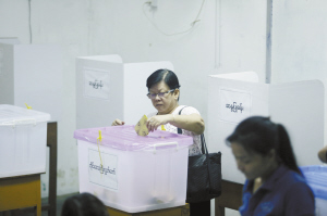 缅甸全国大选开始投票 11月8日,在缅甸仰光,一名女子参加大选投票。当日,五年一次的缅甸全国大选开始投票,将选举产生各级议会。明年2月,新一届联邦议会将选举产生新总统,并由新总统组成新一届政府。新华社发