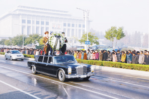 朝鲜为人民军元帅李乙雪举行国葬 11月11日,在朝鲜首都平壤,载有朝鲜最高领导人敬献花圈的车辆通过主干道。当日,朝鲜为朝鲜劳动党中央委员会委员、朝鲜最高人民会议代议员、朝鲜人民军元帅李乙雪举行国葬,数以万计的群众聚集在平壤市中心主干道两侧肃立默哀。李乙雪于当地时间7日病逝,享年94岁。新华社发