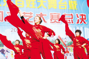 项城市立足当地丰厚的民间文化资源,积极搭建各类平台对优秀民间艺术进行展演,充分挖掘和保护优秀民间艺术。图为11月11日,项城市举办的欢乐百姓大舞台暨第七届民间文艺大赛现场。张永久 摄