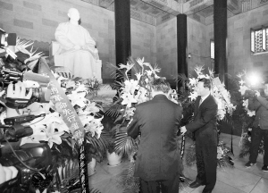 江苏各界人士拜谒中山陵 纪念孙中山诞辰149周年 11月12日,在陵顶祭堂,谒陵人士在向中山像敬献花篮。当日,江苏省暨南京市各界人士在中山陵举行谒陵仪式,纪念中国民主革命的伟大先行者孙中山诞辰149周年。新华社发