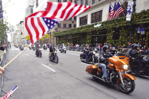 纽约举行游行纪念退伍军人节 11月11日,摩托车骑手在纽约曼哈顿第五大道参加退伍军人节游行。当天,大约两万名军人、军人家属、老兵和乐队在纽约参加一年一度的退伍军人节游行。退伍军人节也被称为退伍军人纪念日,是美国联邦假日。新华社发