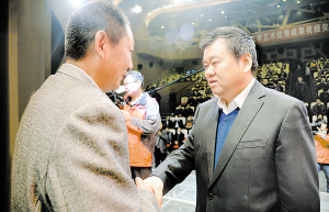 徐光为荣获周口市第四届文学艺术优秀成果奖特别贡献作品奖的太康县道情艺术保护传承中心、周口市杂技马戏团颁奖。