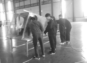 西华县产业集聚区临空行业发展渐趋明朗,围绕通用航空发展民用飞机组装、运输、储藏等业务,已经成为新时期一个新的重要增长极。随着该县航站飞行控制大楼等的建成,以及通用航空企业的入驻,一个全新的经济业态正在形成。图为工人正在组装制造民用飞机机身。记者 刘彦章 摄