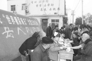 11月14日是“世界糖尿病日”,今年的宣传主题是“健康饮食与糖尿病”。为提高社会各界对糖尿病防治工作重要性的认识,普及糖尿病防治知识,更有效地控制糖尿病的发病率,当天,太康县人民医院在该院门前举行“世界糖尿病日”大型义诊活动。本次义诊活动为群众免费测血压、血糖,提供健康咨询。据了解,现场共为220名群众进行了医疗咨询和检测服务,使前来咨询的群众对“有病治病,无病预防”的新型医疗观念有了更深刻的理解。 记者 史书杰 通讯员 闫云摄
