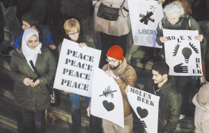 广场中央燃起数百支蜡烛,不时有民众自发高喊“我们团结在一起”“伊斯兰,是和平”等口号,并得到很多人呼应。在活动中,莫伦贝克区区长弗朗索瓦·斯海普曼向遇难者家属致以慰问,并强调莫伦贝克区不是恐怖分子的“后方基地”。