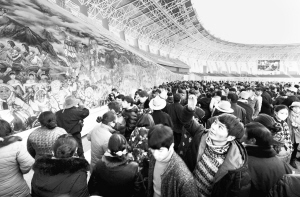 大型传统国画《大美西藏》在拉萨首展 11月20日,拉萨市民在观赏大型传统国画《中国梦·西藏行——大美西藏》。当日,历时4年创作的大型传统国画《中国梦·西藏行——大美西藏》在拉萨市群众文化体育活动中心展出。 新华社记者 晋美多吉 摄