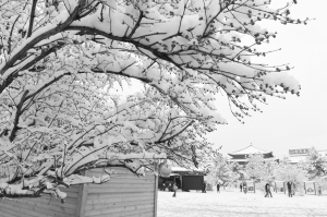 11月22日,游客登上北京景山拍摄雪中故宫。 本栏文图均据新华社电