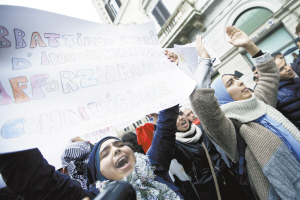 罗马穆斯林社区举行反恐集会 11月21日,意大利罗马,一位女士在由当地穆斯林社区发起的反恐集会上手举标语,上面写着“让我们破除误解,让我们增强共识”。当日,居住在意大利罗马的穆斯林民众参加反对恐怖主义集会,抗议最近在巴黎发生的系列恐袭事件。新华社发