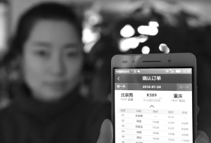 2016年春运火车票起售 11月26日,一位女士通过手机购买春运首日的车票。自当日起,旅客可通过互联网、手机客户端、电话三种渠道提前60天购买2016年春运首日(2016年1月24日)的火车票。车站窗口、代售点、自动售票机等渠道的预售期为58天。新华社发