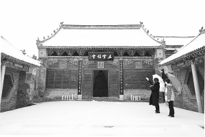 11月24日,一名家长正在扶沟县大程书院立雪讲堂旁为孩子讲述“程门立雪”的故事。企盼已久的降雪如期而至,大地银装素裹。大程书院作为教育孩子尊师重教的重要场所,此时更具有特别的教育意义,迎来一批又一批参观者。