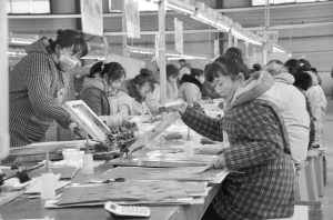 扶沟县坚持以项目促调整,以增量促优化,深入推进工业经济转方式、调结构,坚持以技术高端化﹑产品高端化﹑装备高端化﹑市场高端化为重点,引导企业加快转型升级,推动企业迅速发展。图为该县某制鞋企业生产车间一角。