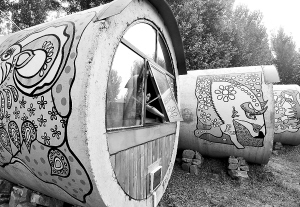 ②这是位于河南省汝阳县农村的一处露天水泥管宾馆(2013年8月11日摄)。