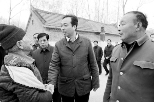 12月10日,周口市委常委、鹿邑县委书记朱良才(右二),县委常委、县委办公室主任李国际(左二)在鹿邑县郑家集乡吴洼村调研精准扶贫工作。闫子健 摄