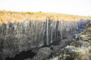 枯水季节的维多利亚大瀑布 这是12月11日在赞比亚和津巴布韦交界处拍摄的处于枯水期的维多利亚大瀑布。维多利亚大瀑布是世界三大瀑布之一,也是非洲第一大瀑布,全长1.7公里,最大落差108米。近两三年来,由于南部非洲气候反常,赞比西河上游地区受多年不遇的旱灾影响,降水不足,导致这几年大瀑布枯水期时水位更低,持续时间更长。新华社发