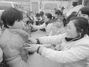 12月11日,商水县舒庄乡计生协组织医务人员来到小太阳幼儿园开展送温暖活动,为孩子们进行了健康检查。乔连军 摄
