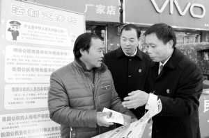 12月4日,县人民法院抽调骨干力量到县城繁华路段,围绕“弘扬宪法精神,推动创新、协调、绿色、开放、共享发展”的宣传主题,通过发放法律知识宣传资料、现场解答法律问题等形式,开展法制宣传活动。 邹鹏举 张晓峰 摄