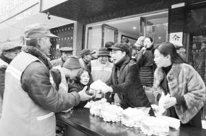 天气日趋寒冷,环卫工人的工作环境面临着很大的考验。项城市一些企业和爱心人士自发为环卫工人提供爱心服务,积极捐赠御寒物品等,让他们在寒冷的冬天感受到了浓浓的暖意。张永久 摄