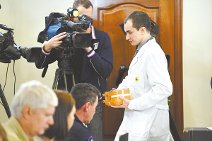 俄罗斯展开被土耳其击落战机黑匣子调查 12月18日,在俄罗斯首都莫斯科,工作人员将被土耳其击落战机的黑匣子带入实验室。