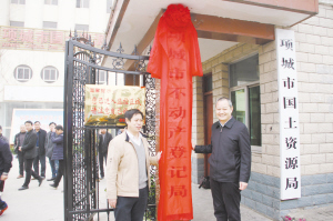 12月11日,项城市不动产登记局成立。周口市国土资源局局长申奇、项城市长刘昌宇共同为项城市不动产登记局揭牌。张纪友 摄
