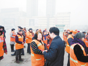 12月24日上午,周口市协和骨科医院、大河网联合川汇区爱卫办,共同开展为环卫工人送爱心、送温暖活动,为40名优秀环卫工人送去了慰问品和慰问金。崔海燕 摄