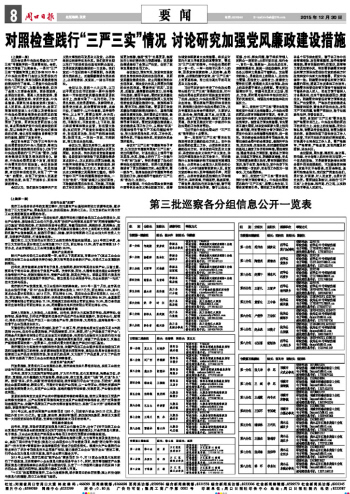 对照检查践行“三严三实”情况 讨论研究加强党风廉政建设措施