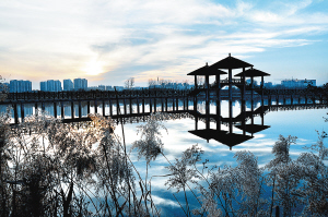 昨日,傍晚的周口公园一片静谧。 近年来,周口市中心城区发展迅猛,一座座高层建筑拔地而起,一批标志性工程点缀城区,营造出城市优美的天际线。在提升城市综合品味的同时,周口市也将中心城区打扮得风姿绰约。在东新区,占地约830亩的周口公园,是周口市惟一一个集科普教育、军事博览、爱国主义教育及园艺观赏等功能为一体的绿色生态综合公园,是市民休闲娱乐的好去处,已成为周口市人文景观的一张标志性名片。 (记者 沈湛 摄)