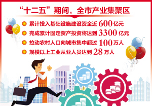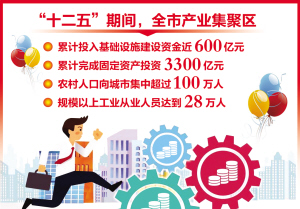 6年来,我市产业集聚区建设实现了从无到有、从小到大、从弱到强、从散到聚的系列转变。全市所有产业集聚区规划面积共计172.35平方公里,到“十二五”末可建设115平方公里。全市所有产业集聚区规模以上工业从业人员到“十二五”末可达到28万人。