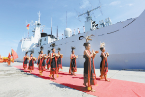 1月16日,在东帝汶帝力港,东帝汶民众跳起当地特色舞蹈,欢迎中国海军的到访。当地时间16日上午,正在执行环球访问任务的中国海军152舰艇编队抵达帝力港,开始对东帝汶民主共和国进行为期5天的友好访问。新华社发