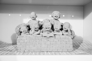 《炕头瞧画书》表现的是上世纪70年代豫东农村儿童在炕头瞧画书的场景,作品温馨、纯朴。评委会给予这样的评语:作品运用三角形的构图,将7位儿童组构于限定空间中,塑他们以欢快的表情紧密地围视于书册间,被书册中有趣的内容所感染而发出会心的笑声,生动而传神。作品长56厘米、宽45厘米、高39厘米,张振福用28天的时间精心创作完成。