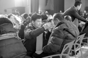 农历腊月初八,周口市文昌中学在人民会堂参加“弘扬孝廉文化,涵养良好家风”报告会。报告会进行了孝道文化、廉洁文化、良好家风、家庭教育与传统文化关系的专题讲座。学校领导还为教师们发放了孝心基金。图为周口市文昌中学教师在舞台上为自己的父母端上腊八粥。 叶九辉 摄