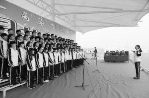 近日,西华县一高举行第15届艺术节,近6000名师生参与了艺术节活动。红歌比赛、书画展、歌曲串烧、激情街舞、诙谐小品等,展示了学校艺术教育硕果。此次艺术节该校还邀请了西华籍知名书法家赵静庵、贾冠华、毛继富、邱先亮、郭联合等现场创作,他们挥毫泼墨,向同学们展示了书法的魅力。图为红歌合唱比赛。