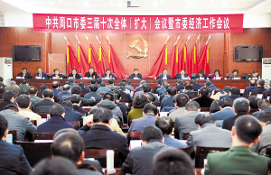 本报讯 (记者 李凤霞) 1月19日至20日,中国共产党周口市第三届委员会第十次全体(扩大)会议暨市委经济工作会议在周召开。全会听取和讨论了市委书记徐光受市委常委会委托作的工作报告和市委副书记、市长刘继标代表市委作的经济工作报告,审议并原则通过了《中共周口市委关于制定周口市国民经济和社会发展第十三个五年规划的建议》,表决通过了《中国共产党周口市第三届委员会第十次全体会议决议》。