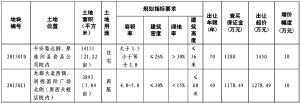 备注:1.2015010宗地竞得人在签订《国有建设用地使用权出让合同》后,2个月内缴清土地成交价款,12个月内必须进行开工建设,建设工期24个月,交地时间3个月内。