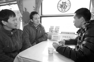 1月25日,在广州开往重庆的K4124次“幸福专列”上,列车工作人员向返乡农民工发放涵盖重庆市针对农民工返乡创业的扶持政策、就业失业和用工求职登记政策等内容的宣传单,为农民工返乡务工和创业提供参考,并邀请两名律师在餐车为农民工提供法律咨询。