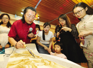 “欢乐春节”活动走进塞内加尔 1月24日,在塞内加尔首都达喀尔举行的2016“欢乐春节”招待会上,来自中国辽宁的烙画传承人李瑞群(左前)表演烙画创作技艺。新华社发