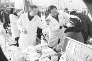 1月27日,由市委宣传部、文明办、教体局、卫计委组织的2016年度文化科技卫生“三下乡”活动在商水县舒庄乡扶苏村隆重举行。图为周口耳鼻喉医院为当地群众义诊。艳霞 摄