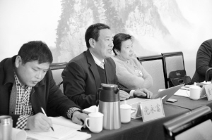 左图:出席省十二届人大五次会议的我市代表在驻地审议《政府工作报告》。