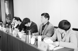 出席省十二届人大五次会议的我市代表在驻地审议政府工作报告。