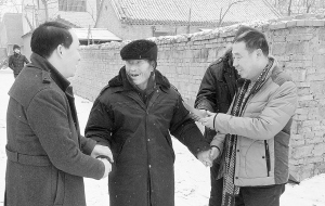1月31日,市国资局驻淮阳朱集乡刘营扶贫工作队冒着大雪,来到81岁的老党员李建挺家,送去慰问金和米面油。1957年入党的李建挺近年来家庭生活困难。面对前来慰问的扶贫工作队员和朱集乡政府工作人员,李建挺紧紧拉住他们的手,激动地说,党没有忘记我这个老同志,感谢组织的关心。记者 王锦春 摄