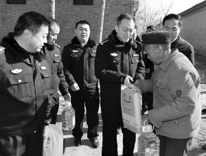 1月26日,扶沟县公安局长田豪杰在固城乡看望困难群众。近日,该局集中开展节日“扶贫济困送温暖”走访慰问活动,局党委成员分赴各辖区,为贫困群众送去大米、面粉等慰问品。