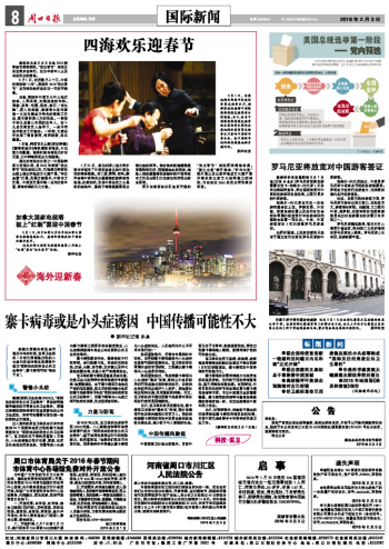 寨卡病毒或是小头症诱因 中国传播可能性不大