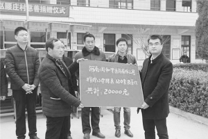 “我们以前的课桌非常破旧,桌面不平整,写字都写不好,今天叔叔们送来了崭新的课桌,我们都很开心,谢谢叔叔们,我们一定会好好学习的!”孩子们感激地说。1月28日,爱心企业同和堂医药有限公司向沈丘县纸店镇赵腰庄村小学捐赠120套崭新的课桌和8000元捐助慰问金。图为捐助现场。