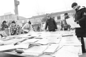 2月4日,沈丘县周营乡集市上,赶年集的人们正挑选自己相中的年画。