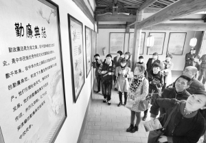 古厝话勤廉 2月18日,在福建省闽清县云龙乡后垅村,几名来自附近乡镇的基层干部和游客在被改造成农村基层廉政教育基地的典利古厝中参观。为保护几近荒废的古厝,将勤廉的美德发扬光大,在征得古厝后人同意后,当地政府结合美丽乡村建设,出资对古厝进行修缮,将其改造为农村基层廉政教育基地。新华社发
