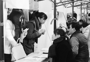 春节过后求职忙 2月19日,求职者在“2016年河北省毕业生就业市场”上咨询就业信息。当日,河北省春节后首场大型招聘会“2016年河北省毕业生就业市场”在石家庄开幕,2300多家用人单位参会,提供就业岗位4万余个。新华社发